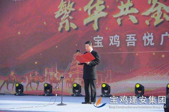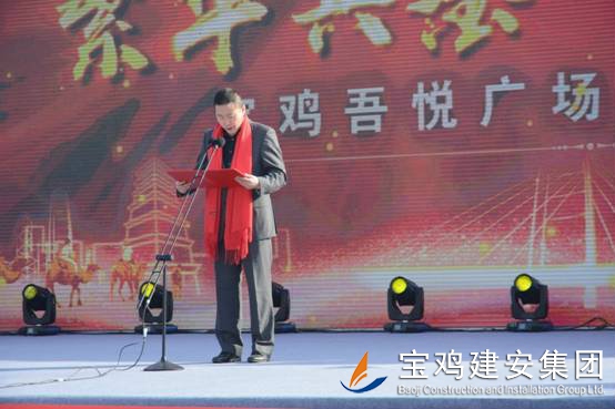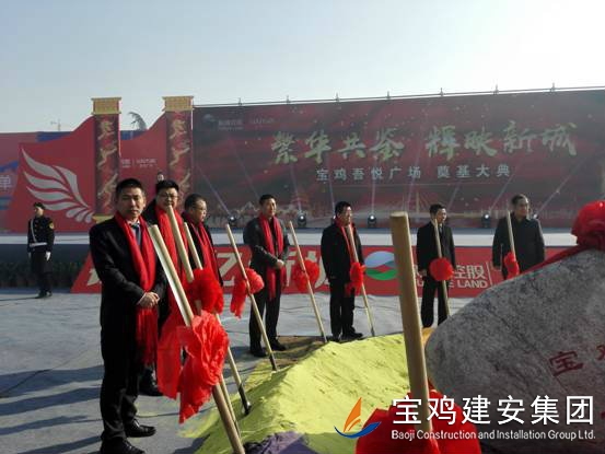 2018年1月16日上午,寶雞新城吾悅廣場項目奠基儀式在高新區舉行,該項目是繼恒大、碧桂園之后,寶雞高新區引進的又一個千億級商業航母——新城控股集團在西北地區建設的第二個一站式綜合廣場。奠基儀式上,公司董事長景常榮代表施工單位致辭,新城控股集團副總裁陸建華代表建設單位致辭,高新區黨工委書記、管委會主任郝晉升代表政府單位致辭。高新區管委會領導、新城控股集團領導、寶雞建安集團董事長、寶雞市中小企業協會領導等為項目培土奠基。公司組織管理人員、施工人員共計300人參加了奠基儀式。